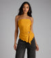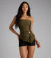 Show off a chic allure in this trendy sleek knit tube top designed with a front O-ring accent and asymmetric hem. Style with a mini skirt and heels for a night out.