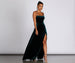 Steal the show with the glamorous Alycia gown. She features a lightly padded chest. a square neckline. adjustable shoulder straps that lead to a back lace-up and tie closure. a leg slit and a floor-length design. Alycia is partially lined. has a little bit of stretch and is made from a classic velvet fabric.