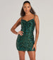 The Amara sequin mini dress makes the whole room shimmer! The party dress is designed to captivate in a sleek cowl neckline and bodycon silhouette that flaunts your figure. Complete the look with earrings and heels.