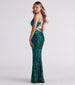 Dreaming of sparkle for homecoming or parties? The Amaya sequin formal long dress is the perfect gown that will have all eyes on you! She features a sleeveless V-neckline with a padded bust that eliminates the need for a bra. dual spaghetti straps that lead to a gorgeous lace-up back design for a customized fit. a flattering high waist seam. and a floor-length fitted silhouette. The lined mesh fabric features all-over sequin embroidery in an intricate vintage-inspired scroll design. Complete your look with the formal maxi dress with rhinestone earrings and neutral heels.