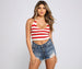 Rep those classic Americana stripes with this crop top this summer! The top features a halter neckline with a halter neck tie. red and white stripes. and a cropped hem. Complete look with denim shorts to complete your look!