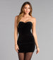 Designed for the woman who loves a little drama. The Amery mini dress stuns in plush velvet with a sculpted corset bodice and a statement bow that turns every exit into an entrance. The strapless sweetheart neckline and bodycon fit make it the definition of chic. party-ready polish.