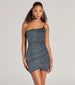 Amp up the glitz and glamour in this gorgeous glitter knit mini dress! It features an asymmetrical one-shoulder neckline with a single spaghetti strap. a faux wrap-front hem with pleated detailing at the waist. and a short. curve-hugging silhouette. The glitter knit fabric offers a moderate stretch. Style with rhinestone heels for all the more sparkle.