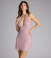 You've never seen beading like this. The Anna mini dress has a whole new glam vibe everyone will love. from the halter keyhole neckline to the flirty A-line silhouette. you'll have every eye on you!