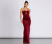 Make a remarkable first impression in our Annabeth gown! She is designed with a sweetheart neckline. a bow-like bodice with a small cut out detail below the cup area. and a form fitting silhouette that leads down to a floor sweeping hem. She is fully lined and has a wired boning down the sides of the bodice. She is composed of a velvet material adorned in glitter that reflects red. She offers moderate stretch. Glitter may transfer.