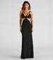 For their viewing pleasure. Enter the party in Annah and watch every eye look towards you! She features a sleeveless. v-neckline with attached straps. and a sexy cutout bodice for a peek of skin leading to her form-fitting. floor-length hem that kisses the floor with each step. The formal dress is composed of a crepe-lined knit fabric with lining and a moderate stretch. Complete your formal look with a sparkly clutch and earrings.