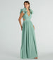 Cut to flatter and flaunt! The Anne Marie chiffon formal dress showcases your best features as a stunning bridesmaid. wedding guest. or banquet. This dress will accentuate your figure with a stunning V-neckline and structured ruffled shoulder straps. The cutout waist and lace-up back add a touch of allure. while the chiffon fabric creates a flowing A-line silhouette. Perfect for any formal occasion. this floor-length dress will make you feel like a true fashion icon! Complete the look with a necklace and strappy heels.
