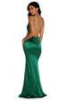 Make your night one to remember in our mesmerizing Aria dress! She features an all over a sleeveless bodice. a plunging V neckline. padded cups and princess seams. Her narrow straps lead to a trendy open back that leads to a ruched lower back detail. Her slim fit bodice leads to an elongating floor length silhouette. Aria is composed of a stretchy satin fabric that offers a form hugging fit with a moderate stretch.