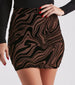 Express your inner artsy side in this unique mini skirt featuring a high-rise elastic waist. bodycon silhouette. and a flocked velvet swirl pattern on mesh fabric with a knit lining. Style with a basic long sleeve bodysuit to complete the look!