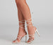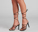 These stiletto heels bring a major attitude to your fierce fit! They feature a square toe. stiletto heel. and faux leather lace-up straps. Complete the look in a saucy cocktail dress for wine & dining.