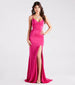 The Aubrey formal dress is designed to accentuate your curves with a dramatic flair - a daring and chic style for bridesmaids or red-carpet events! She features a sleeveless V-neckline. a ruched bust seam. spaghetti straps that lace up in the back. and a form-hugging mermaid silhouette with a sultry. high front slit along the floor-sweeping hem. The formal dress is composed of lined slinky and smooth knit fabric with plenty of stretch. Complete the look in platform heels and jewelry!