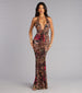 Designed to turn heads. the Aubrey formal dress pairs delicate leopard floral lace with a sculpted halter neckline and wired plunge bodice for a confident. sculpted fit. Finished with a sweeping mermaid silhouette and front sash detail. it's made for moments that deserve to be remembered.