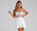 Bring the sparkle with the Aubrianna formal dress! She'll put you in the spotlight with all eyes on you. Aubrianna features a sleeveless sweetheart neckline. adjustable spaghetti straps for a customized fit. a bustier-like bodice. and lined and padded cups. Her sheer mesh illusion bodice features heat stone embellishment. contrast piping. and a high waist seam leading to a flirty ruffled satin skater skirt. The dress is composed of a combination of mesh and satin fabric that offers a fit and flare silhouette with minimal stretch. Complete the look with rhinestone heels.