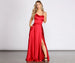 Sashay into the room with confidence as you captivate in our Aurelia dress! She features a rich red color. a scoop neckline. padded cups and narrow straps that lead to lattice back. Her empire waist accent leads to a floor length silhouette accented with a high slit. Dress is composed of a lined satin-like fabric that offers a form hugging fit with minimal stretch. Includes a back zipper closure.