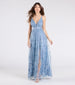 All-over sequins and glitter shimmer on flowy tulle add elegance to the Ayva formal long dress! This gown highlights your best features with an open strappy back designed to turn heads and a flattering A-line silhouette.