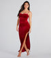The Azelia formal glitter long dress will speak your language for sparkle! She shines in a sleeveless cowl neckline. spaghetti straps. a slim silhouette. and a sultry high-side slit that reveals some leg down to the long-length hem. The formal dress is composed of a soft velvet fabric with glistening glitter for the perfect shimmer! Complete the look in lace-up heels for a holiday gala or winter formal.
