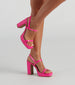 Walk that walk babe in these platform block heels! They feature an on-trend square toe. thin toe. and ankle strap with buckle closure. composed of shiny patent faux leather material. Complete the look in a marabou trim dress for a night out!