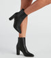A basic bootie is all you need to create chic layered outfits this season! The booties feature an ankle-high length. a pointed toe. and a sturdy block heel. The bootie is composed of a smooth faux leather material. Complete your look with a ribbed sweater.Â