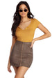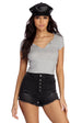 Bring it back to basics to create an effortlessly chic look! This must have top features a black hue. a V neckline. short sleeves and a cropped hemline. Top is composed of a smooth ribbed knit fabric that offers a form hugging fit with a moderate stretch.