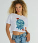 This trendy cropped graphic tee is the perf style for your weekend plans! Made with a lightweight cotton-blend fabric. it features a classic crew neckline. short sleeves. a fun beer-inspired front graphic with the script. "Bad Choices Make Good Stories." and a cropped hem with a relaxed fit. Pair with light-wash jeans and sneakers to go bar-hopping!
