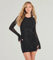 Make an entrance in the Bailey party rhinestone dress designed with an open back and sassy bodycon fit to flaunt your figure! Complete the with earrings.
