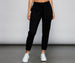 Keep it basic and chic with cargo pants that mix with your streetwear so perfectly! The pants feature a high-rise waist. a single button with zipper closure. slant pockets. removable tie waist belt. cargo pockets. a skinny leg fit. and a cuffed hem with trendy ankle ties. The pants are composed of a twill knit fabric that offers a form-hugging fit with slight stretch. Complete look with a graphic tee and combat boots.