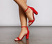 These basic and chic faux suede block heels are a stylish must-have! They feature an open almond toe with a strap. a thin ankle strap. a closed back with a zipper. and a block heel. Pair these shoes with a little black dress and a sleek clutch.
