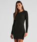 This ribbed knit mini dress is a basic must-have that needs to be in your wardrobe! It features a classic crew neckline. long fitted sleeves. and a short. form-hugging fit. The ribbed knit fabric offers a moderate stretch. Style with hoop earrings and knee-high boots.