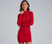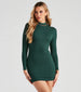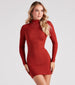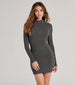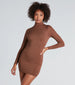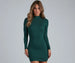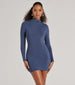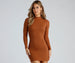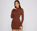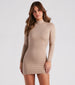 Make a sleek statement with this long-sleeve mini dress. the epitome of chic simplicity. This figure-hugging silhouette. crafted from a soft ribbed knit fabric. offers both warmth and style. Featuring a high turtleneck for a touch of polished sophistication. this mini dress is perfect for transitioning from day to evening. Layer this ribbed knit mini-dress with an oversized faux leather blazer or stylish trench coat and knee-high boots for the perfected layered outfit.