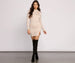 Amp up your basic mini dress with a trendy side slit! This staple piece dress features a mock neck. long sleeves. and a side slit. The dress is composed of a lined ribbed knit fabric that offers a form hugging fit with a moderate stretch. Complete look with ankle booties.
