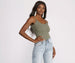 Strap up in a ribbed knit bodysuit. This basic staple piece will take you from festival to dinner with the squad. It features a sleeveless bodice with a plunging scoop neckline. spaghetti straps. and a strappy back with tie back straps. The bodysuit is composed of a ribbed knit fabric that offers a form hugging fit with a moderate stretch. Complete your minimal vibe with high waist shorts and dad sneakers. Â