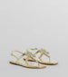 Level up your fabulous vacay 'fits with these glam rhinestone metallic sandals! Made with sleek faux leather with a metallic sheen. they feature a square-shaped toe. a thong strap with a glitzy rhinestone-embellished palm tree design. an adjustable ankle strap with a buckle closure. and a flat sole for comfortable wear. Style with a flowy sundress and hoop earrings for a beachside dinner!