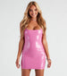 Bring the glam vibes with this sleek faux leather mini dress! It features a sleeveless square neckline. thin halter straps. an underbust seam. a mini-length hem. and a curve-hugging bodycon silhouette to flaunt your figure. The patent faux leather fabric has minimal stretch. Complete your party look with pink platform heels.