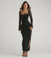 Elevate your wardrobe with the chic Becka formal column dress for fancy soirees! Crafted from sheer mesh fabric for a luxurious look. the long dress is designed with sheer long bell sleeves and a striking fitted column silhouette with a sultry slit.