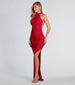It's not a party til you arrive in the sparkly Belinda formal glitter long dress! She features a classy halter neckline with button closure. a stunning open strappy back design. side and back ruched seams to accentuate your curves along her slim silhouette. and a long hem with a sexy side slit. The formal maxi dress is crafted from a glitter knit fabric that leaves every room shimmering! Complete the look with a clutch and earrings for a red carpet event or gala!