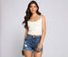 Live your best life with a crop top that keeps it stylish! The crop top features a sleeveless scoop neckline. spaghetti straps. a ruched bodice with a cute tie-front accent. and a cropped hem. Complete look with a denim mini skirt.