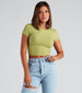 Round up the perfect crop top collection with this ribbed knit tee. This short-sleeve crop top features a round crew neck and is made of soft ribbed knit fabric that perfectly forms to your shape. The cropped length pairs perfectly with high-rise jeans or style it with low-rise cargo pants for a flirty and edgier aesthetic.