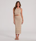 Enjoy stylish bliss in this crochet midi skirt on your next getaway or weekend outing! The skirt offers a flattering high-rise elasticized waist. a bodycon silhouette. and a midi-length hem. Complete the look with the matching top.