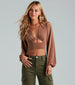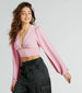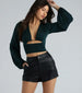 Blow everyone away with your sultry style in this knit crop top perfect for pairing with your favorite denim! The top features long peasant sleeves. a plunge V-neck with an underbust cutout. and a head-turning tie-back closure. Complete the look with best-selling jeans.