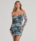 This bold blooming floral mesh mini dress is perfect for your spring parties! Detailed with an alluring abstract floral print on the airy lined mesh fabric. this mini-length dress will catch all the glances. The off-the-shoulder sweetheart neckline gives off a romantic look. while the bust seam outline adds a sultry flair. The all-over ruched detailing will accentuate your curves and showcase your gorgeous figure on the bodycon silhouette. Style this short dress with sleek mules.