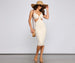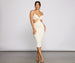 Make a bold impression with a midi dress that cuts a sultry look! The midi dress features a plunging V-neckline. spaghetti straps. sexy cutouts at the waist. and a midi-length silhouette. The dress is composed of a ribbed knit fabric that offers a form-hugging fit with a moderate stretch. Complete the look with mules.