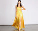 Our beautiful Bonnie dress will make you feel like a vision of perfection! She features a flattering V-neckline. a sweeping A-line silhouette with a high slit. and pleats. She is composed of a fully lined satin-like fabric that offers a form hugging fit with a moderate stretch. Complete your special evening outfit with a sleek clutch.Â