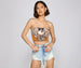 Hit the open road with this tube top that says it all! The tube top features a sleeveless square neckline. an eagle graphic. and a graphic that reads: "Motorcycle Hell Rider. Complete look with cutoff shorts.Â