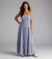 An effortless woven maxi dress for shower celebrations. graduations. or meet-ups with the girls! It boasts a flowy ruffled silhouette and a floor-length hem perfect for styling with cute sandals.