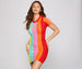 Hey beauty. amp up your summer style with this bright sweater knit mini dress! It features a crew neckline. short sleeves. a mini-length. curve-hugging silhouette. and a trendy multi-colored color block pattern. Complete the look with casual sneakers.