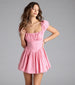 Brighten up any celebration or brunch in this adorable bubble hem skater dress showcasing cute puff sleeves. a lace trim. and a drop waist seam that accentuates your figure!