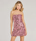 Make it a shimmering night in this floral sequin mini dress for an unforgettable look at school dances or birthdays! The sequin floral embellished pattern adds a touch of glamour. while the mesh fabric lined with stretchy knit ensures comfort. Designed with a strapless neckline and non-slip grip lining. this dress boasts an A-line silhouette and a mini-length hem for a flattering fit. Complete the look with statement earrings. a bracelet. and heels for a divine night!