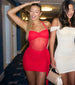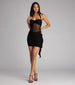 When the vibe is hot and your outfit's hotter—this is the one. With a sheer mesh waist insert. ruffled side sash. and a curve-hugging bodycon fit. this mini dress brings the drama wherever you go.