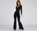 Bring the flare to your look with a jumpsuit that keeps it majorly fab! The jumpsuit features a wrap V-neckline. long fitted sleeves. a straight leg. and a flared hem. The jumpsuit is composed of a smooth knit fabric that offers a form-hugging fit with a moderate stretch. Complete your outfit with mules and a crossbody.