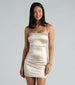 Bring the glitz and glamour to your night out look with this fabulously flashy rhinestone mini dress! It features a sleeveless square neckline. spaghetti straps. an alluring open back with a cross-back lace-up strappy design. a mini-length hem. and a bodycon silhouette to flaunt your figure. The satin-knit fabric features all-over rhinestone embellishments for a gorgeous shine. Style with stiletto heels and a sleek clutch.